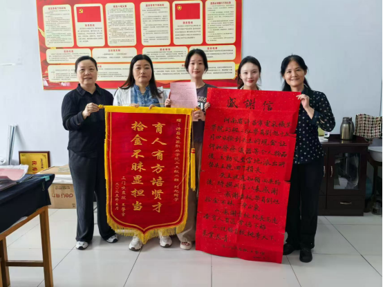 錦旗寄謝意,善舉暖人心。5月13日上午,一面繡有“拾金不昧顯擔(dān)當(dāng),育人有方培賢才”的錦旗和一封飽含深情的感謝信,送到了藝術(shù)與設(shè)計(jì)學(xué)院辦公室,為我院增添了一抹溫暖亮色,也讓2023級(jí)嬰幼兒托育服務(wù)與管理2班學(xué)生劉旭拾金不昧的事跡廣為人知和流傳。